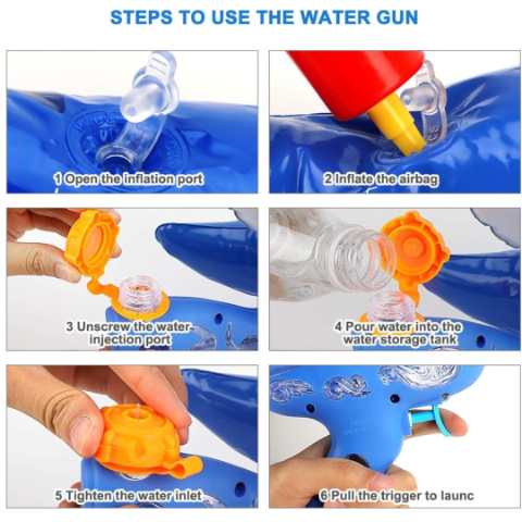 Pentru a-l utiliza, se pompează cu ușurință aer în camera specială, se umple rezervorul și se trage pentru o rafală puternică de apă.