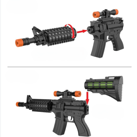 Pușcă mitralieră de jucărie pentru copii cu lumini LED colorate, efecte sonore, piese detașabile și curea de umăr