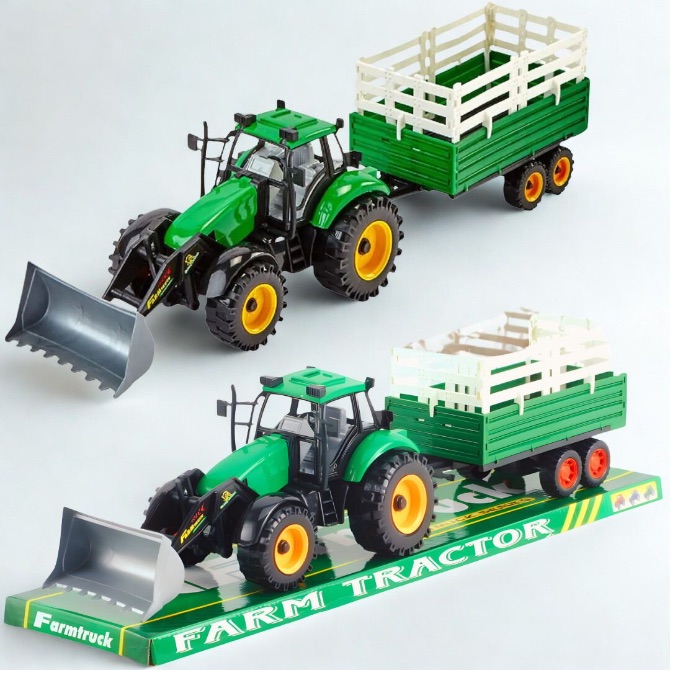 Acest tractor jucărie pentru copii combină lucrările de încărcare și transport într-o experiență completă de joacă la fermă.