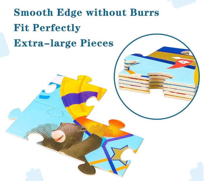 Piesele sunt mari, cu margini netede, astfel încât să fie ușor de manevrat de către copii.