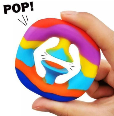 Colorată în nuanțe vibrante de curcubeu, această jucărie nu doar că eliberează stresul, dar oferă și o experiență tactilă de neuitat. Strânge și eliberează pentru a auzi sunetul satisfăcător de „pop” produs de ventuzele sale speciale.