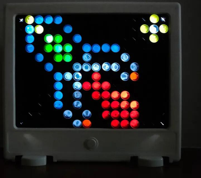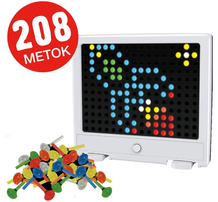 Cu ajutorul celor 208 piese colorate, copiii își pot dezvolta creativitatea, realizând desene luminoase care prind viață pe ecranul luminos.