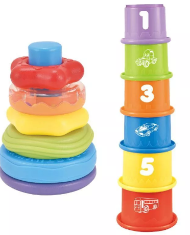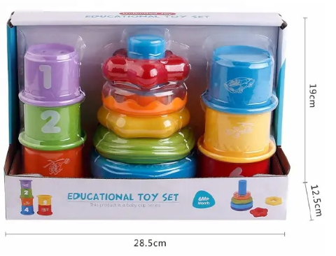 Setul educativ de inele și pahare colorate oferă o experiență interactivă și educativă pentru cei mici, ajutându-i să descopere lumea formelor și culorilor.