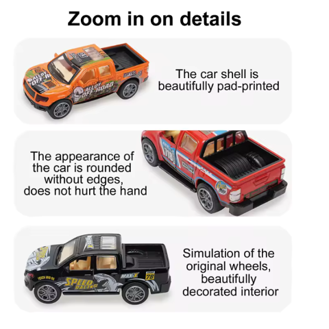 Designul compact și carcasa din aliaj rezistent la șocuri fac aceste mașinuțe ideale pentru jocurile de zi cu zi, fără grija deteriorării.