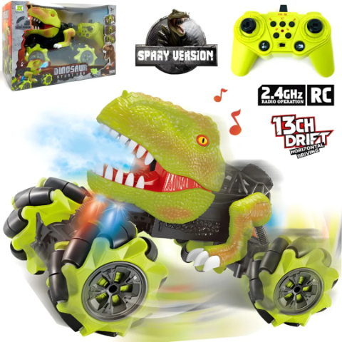 Această jucărie inedită combină aspectul feroce al unui dinozaur cu tehnologia unei mașini de cascadorii telecomandate.