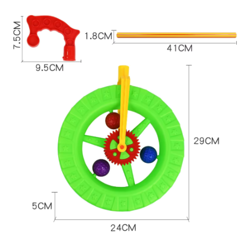 Cu un mâner ergonomic ușor de apucat, jucăria este perfectă pentru a dezvolta echilibrul și coordonarea copiilor.
