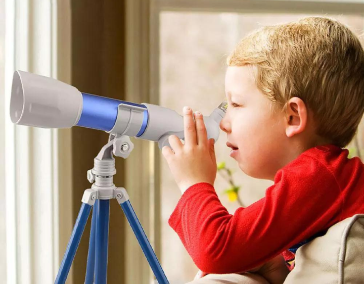 Descoperă misterele universului cu acest telescop pentru copii, care vine echipat cu lentile de mărire de 20x, 30x și 40x.
