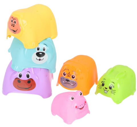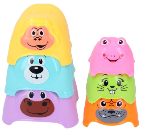 Stivuirea animalelor devine un joc plin de bucurie, în timp ce copilul descoperă diverse forme și culori.
