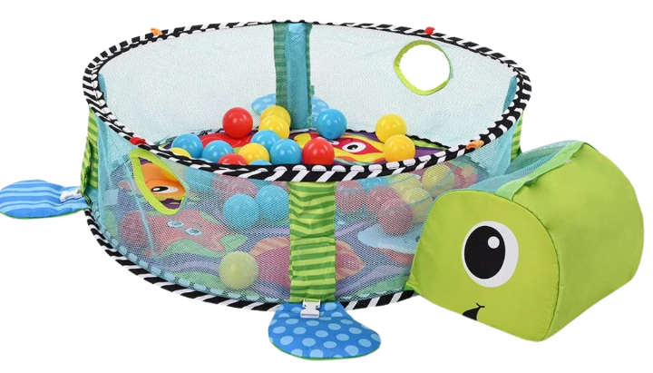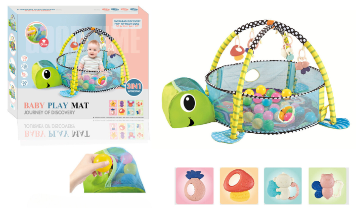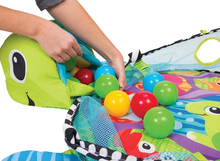 Broasca țestoasă prietenoasă transformă joaca într-o aventură captivantă cu bile colorate, perfectă pentru micuțul tău.