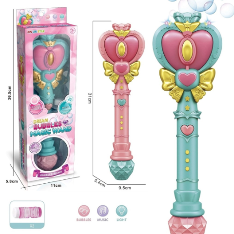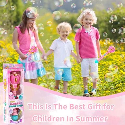 Această baghetă magică creează un spectacol de bule și lumini, fiind ideală pentru joaca interactivă.
