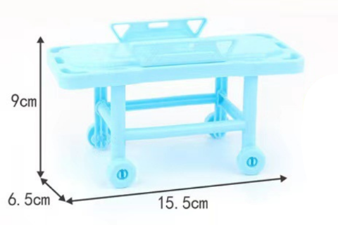 Targa mobilă adaugă un plus de realism, permițând copiilor să transporte „pacientul” și să simuleze intervenții medicale.