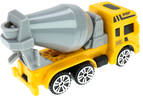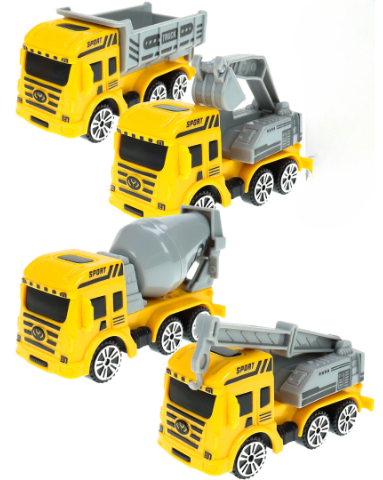 Setul include patru modele diferite de utilaje: un camion cu basculantă, o betonieră, un excavator și o macara, toate cu detalii captivante și un design colorat, atrăgător pentru cei mici.