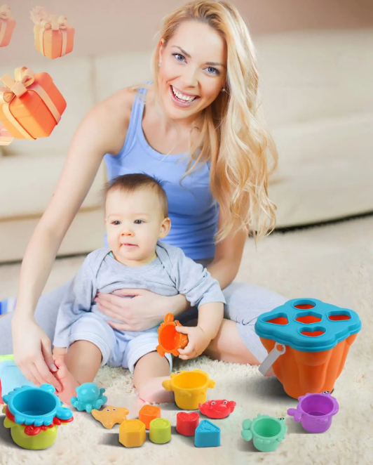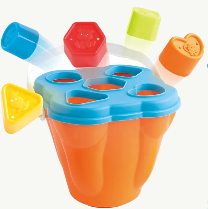 Găletușa cu forme geometrice atractive îndeamnă copilul să descopere lumea formelor și să le potrivească corect, dezvoltându-și astfel abilitățile de rezolvare a problemelor.