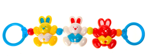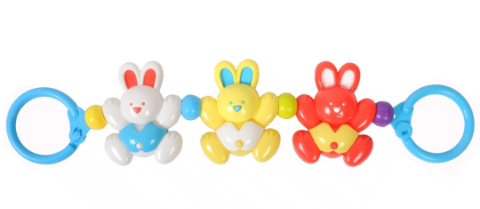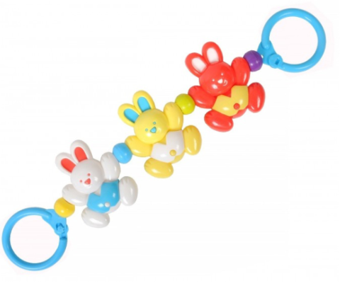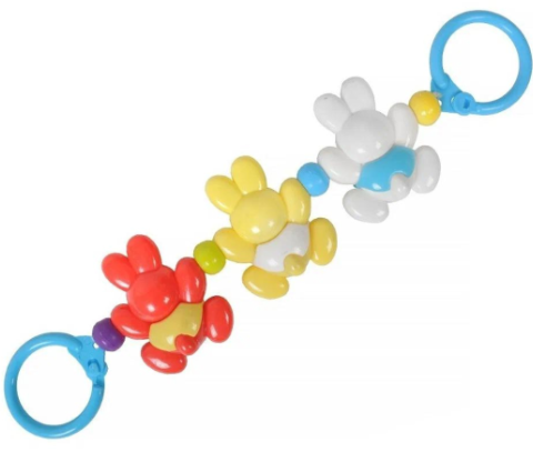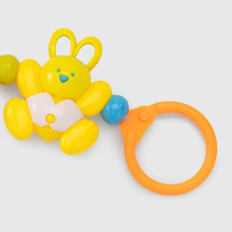 Acest lanț colorat cu iepurași zornăitori aduce bucurie fiecărui moment de joacă și plimbare a bebelușului.