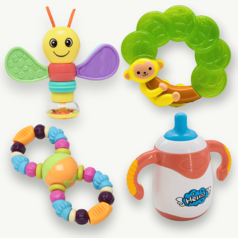 Acest set adorabil de jucării senzoriale include mai multe piese menite să aducă zâmbete și dezvoltare bebelușului.