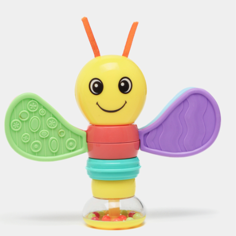 Fluturașul vesel cu aripile sale colorate și texturate stimulează simțul tactil și oferă o experiență vizuală plăcută.