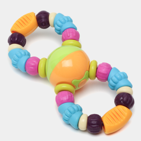 Zornăitoarea cu mărgele colorate este perfectă pentru a dezvolta coordonarea și abilitățile motorii ale bebelușului, încurajându-l să o miște și să exploreze sunetele.