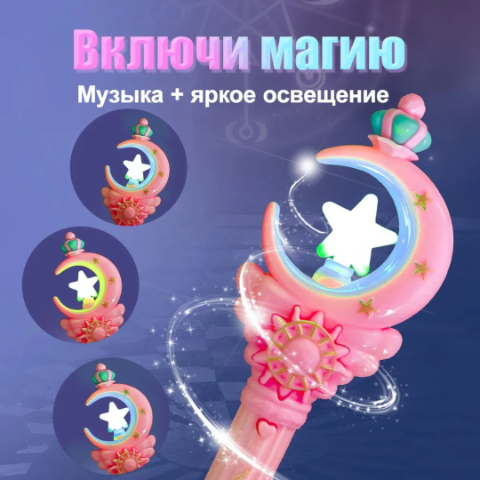 Această baghetă magică roz încântătoare, decorată cu o stea luminoasă și o semilună, îi aduce micii tale zâne o atmosferă de poveste.