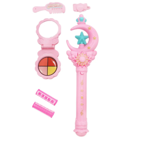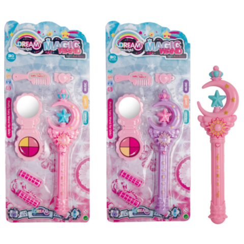 Bagheta este însoțită de accesorii fermecătoare, cum ar fi oglinda decorativă și peria mică, pentru ca micile prințese să își creeze propriul lor colț de poveste.