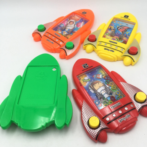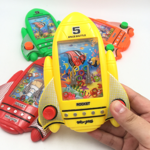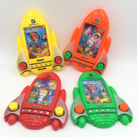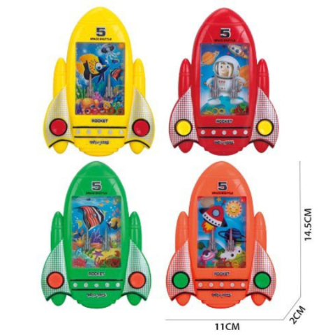 Inspirat de explorarea spațiului, acest joc cu apă în formă de rachetă îi provoacă pe copii să potrivească inelele plutitoare pe țepușele centrale.