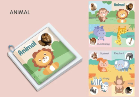 Această carte textilă plină de culoare și farmec le oferă copiilor ocazia să descopere animale simpatice precum leul, girafa, zebra și multe altele.