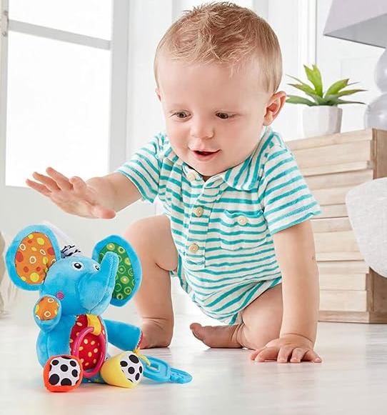 Acest adorabil elefănțel de agățat este o jucărie senzorială perfectă pentru bebeluși.