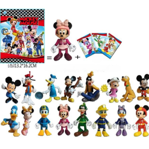 În fiecare pachet surpriză se ascunde o figurină aleatorie inspirată din lumea magică a lui Mickey Mouse și a prietenilor săi, alături de trei cartonașe ilustrate.