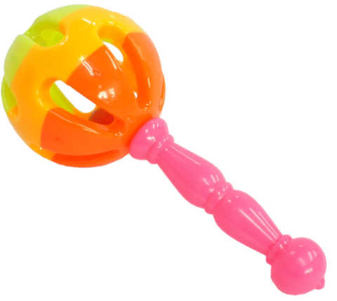Forma ergonomică și mânerul texturat permit bebelușilor să o prindă și să o agite cu ușurință.