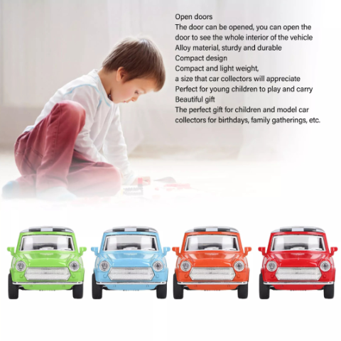 Modelul este realizat la scară 1/32, permițând copiilor să se bucure de o replică detaliată a unei mașinuțe mini-cooper, ideală pentru colecționari și micii șoferi.