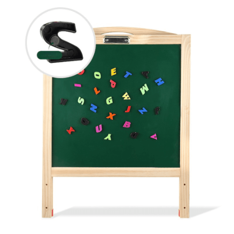 Fiecare literă se prinde ușor pe suprafețe metalice și poate fi mutată fără efort de către copil.