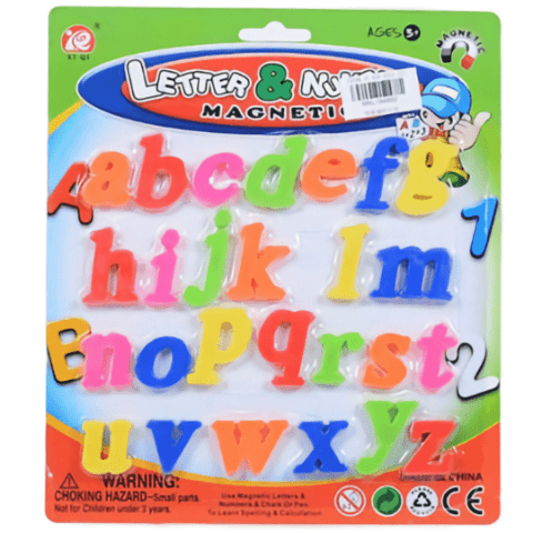 Setul conține toate literele alfabetului în format minuscul, viu colorate, cu magnet fixat pe spate – ideale pentru tabla magnetică sau frigider.