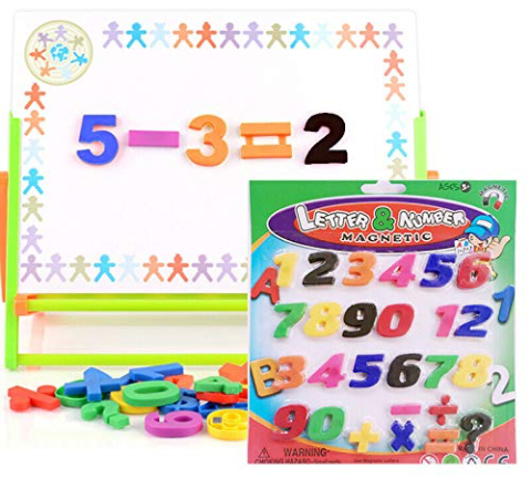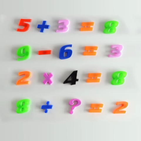 Copiii vor învăța să recunoască cifrele de la 0 la 9 și să rezolve exerciții simple de matematică folosind semnele magnetice (+, -, =, ÷, ×).