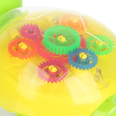 Carapacea transparentă dezvăluie un ansamblu fascinant de angrenaje colorate care se mișcă, stimulând curiozitatea micilor exploratori.