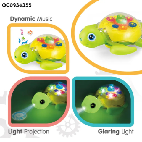 Această adorabilă broască țestoasă interactivă atrage imediat atenția copiilor prin designul său colorat și funcțiile captivante.