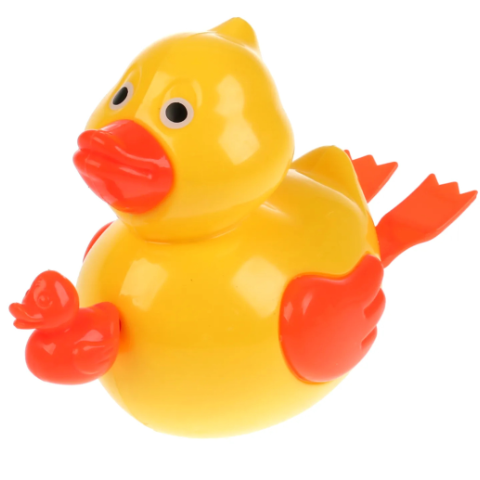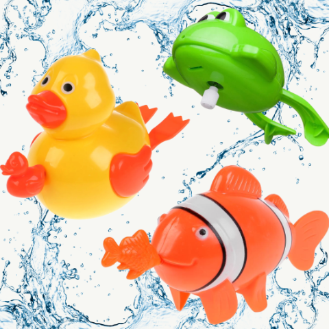 Rățușca galbenă, peștișorul portocaliu și broscuța verde sunt dotate cu un mecanism cu cheiță, astfel încât să înoate energic fără a necesita baterii.