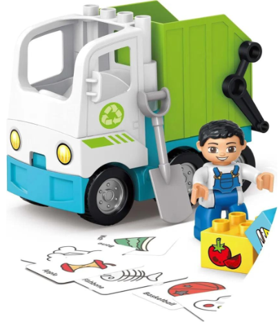 Cu 29 de piese, inclusiv o mașină de gunoi, coșuri colorate de reciclare și figurine, cei mici vor putea construi propria stație de sortare a deșeurilor.