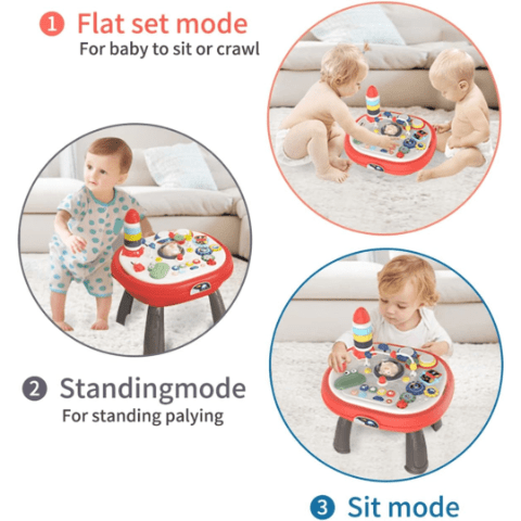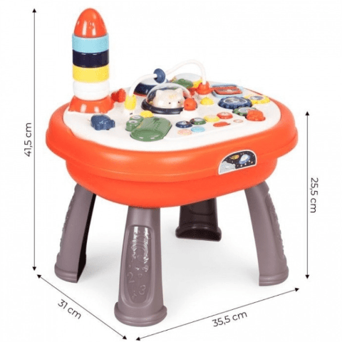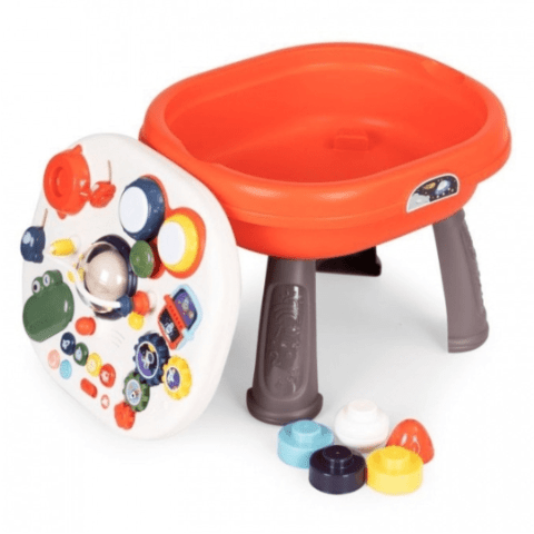 Datorită designului robust cu picioare detașabile, masa poate fi ajustată în funcție de etapa de dezvoltare a copilului, fie pentru joacă în picioare, fie pentru activități la sol.