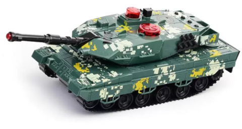 Acest tanc impresionant, cu un design realist camuflat în nuanțe verzi și bej, atrage atenția oricărui mic explorator.