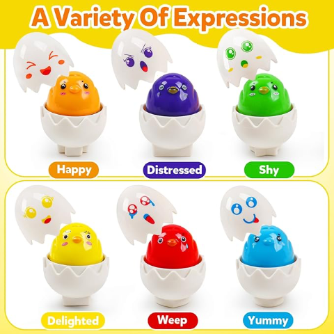 Copiii vor fi fascinați de expresiile diferite ale fiecărui ou, învățând să recunoască și să interpreteze emoțiile într-un mod jucăuș, prin culorile vii și expresiile drăgălașe.