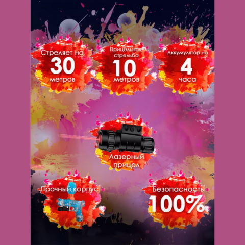 Dotat cu un laser pentru o țintire precisă până la 10 metri, pistolul oferă o experiență autentică de joacă.