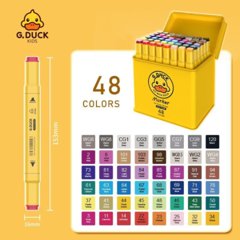 Descoperă un set premium de 48 de markere cu două capete, ideal pentru desen, ilustrații și schițe creative.