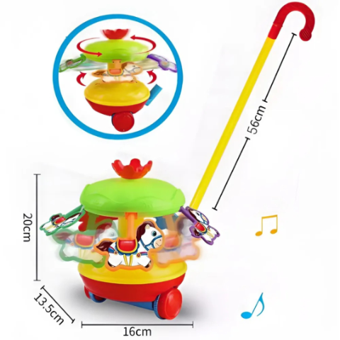 Caruselul magic cu mâner aduce zâmbete și momente pline de bucurie celor mici.