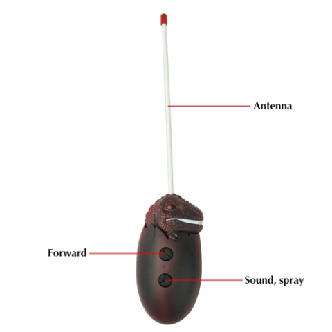 Telecomanda ușor de utilizat permite controlul complet al dragonului, incluzând mersul și activarea fumului.
