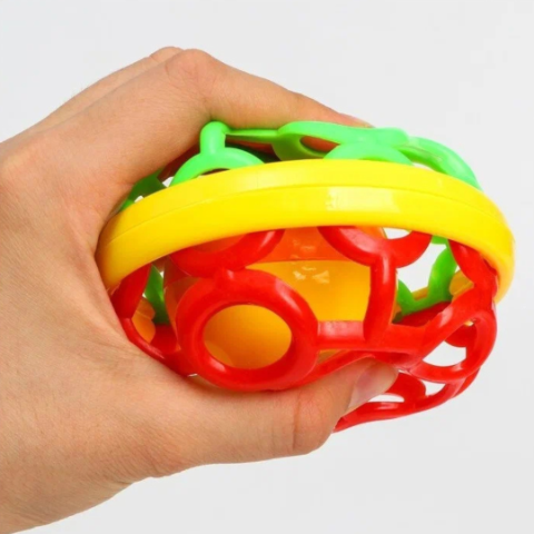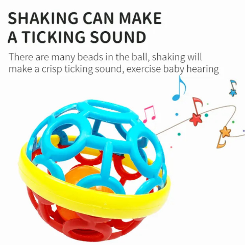 La fiecare mișcare, mingea scoate un sunet delicat, stimulând auzul și distrând copilul.