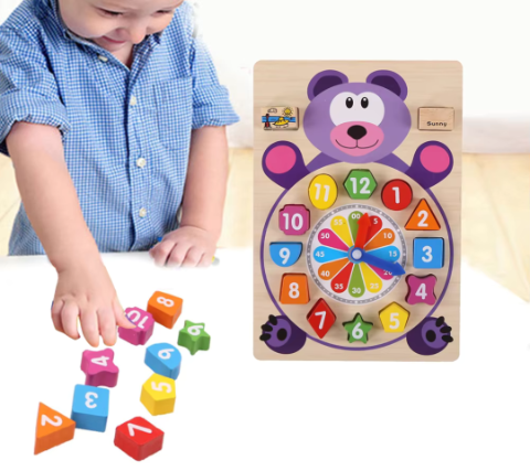 Acest ceas didactic adorabil, în formă de urs, este conceput pentru a ajuta copiii să învețe numerele, culorile și noțiunea timpului într-un mod distractiv și interactiv.