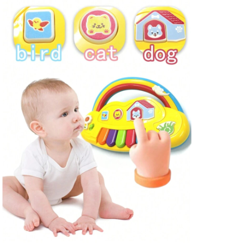 Simpaticul pian include butoane cu imagini de animale, oferind sunete amuzante care îi încântă pe cei mici.