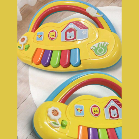 Fiecare clapă produce sunete distincte, încurajând explorarea auditivă și dezvoltarea senzorială.