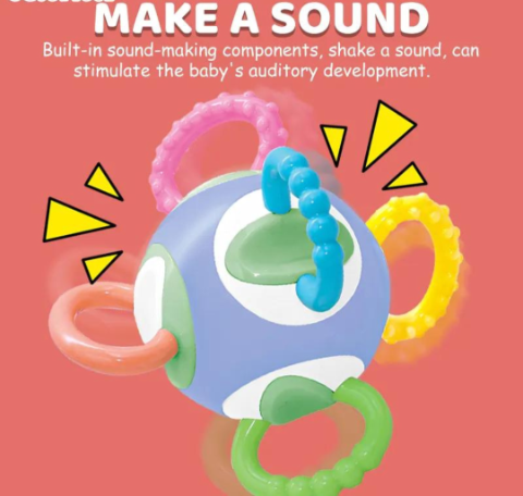 Jucăria emite sunete plăcute la rotire și poate fi sterilizată la temperaturi ridicate pentru a fi sigură și igienică.