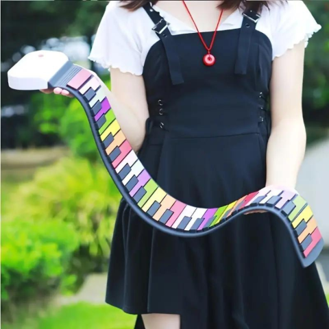 Ușor de rulat și transportat, pianul devine un partener ideal pentru călătorii sau sesiuni de joacă acasă.
