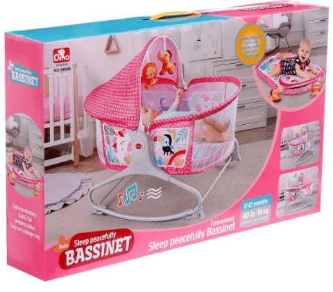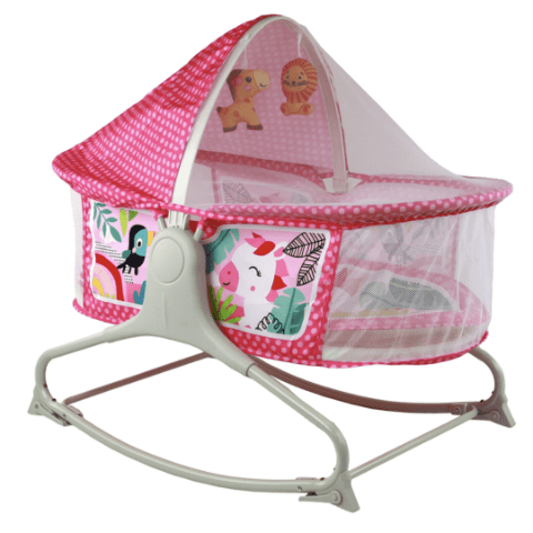 Pătuțul este pliabil, ușor de transportat și perfect pentru camera copilului sau pentru călătorii.